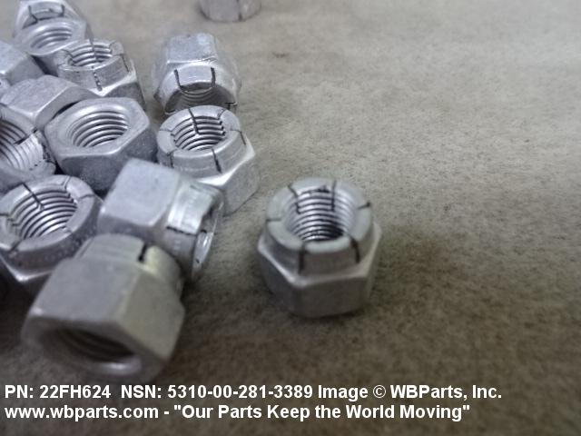 5310-00-167-1293 A nut having 6 flat sides, flat on the bottom and having a slotted cylindrical or dome shaped upper portion. It is designed to provide positive locking when used with a solid or split (cotter) pin. Excludes NUT (1), PLAIN, SLOTTED, HEXAGON.