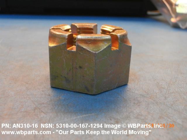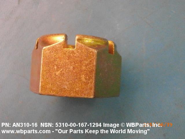 5310-00-167-1294 A nut having 6 flat sides, flat on the bottom and having a slotted cylindrical or dome shaped upper portion. It is designed to provide positive locking when used with a solid or split (cotter) pin. Excludes NUT (1), PLAIN, SLOTTED, HEXAGON.