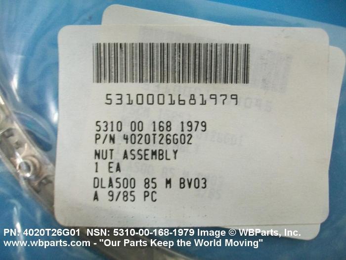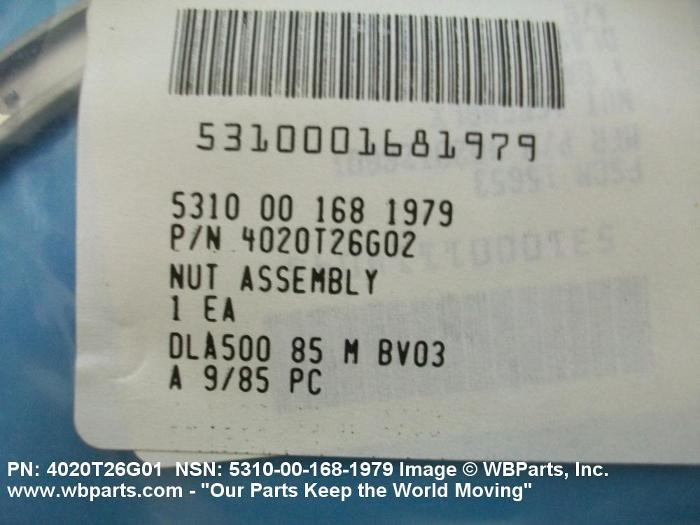 NSN 5310-00-168-1979 4020T26G01, 00-168-1979, 001681979