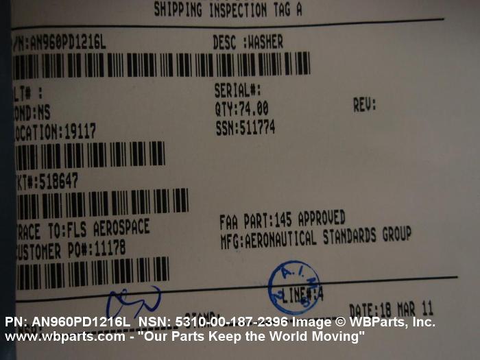 NSN 5310-00-187-2396 AN960PD1216L, 10088005 , 00-187-2396