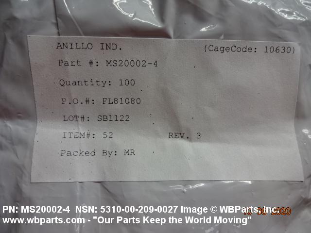 NSN 5310-00-209-0027 MS 20002-4 , MS2000204, MS200024