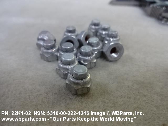 5310-00-222-4246 A nut internally threaded from one end, and completely enclosed on the opposite end. The outer periphery parallel to the threaded axis may be square, cylindrical, hexagonal, octagonal, dodecagonal or the like and taper to a cone or dome shape on the closed end. An integral feature is incorporated for locking on the threads of a mating memeber. Excludes NUT (1), STAMPED.