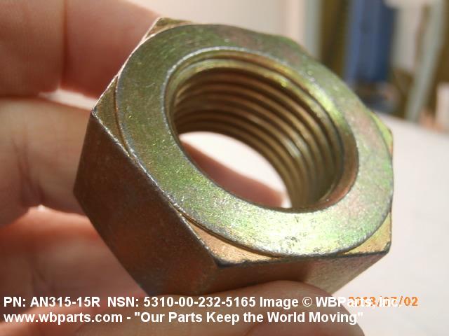 5310-00-232-5165 A nut, flat on top and bottom having 6 flat sides. For items which have internal tapered or straight (parallel) pipe threads, specific electrical conduit size designation, and which when installed, provide a method of tightening to lock the connection, see LOCKNUT, ELECTRICAL CONDUIT. See also LOCKNUT, TUBE FITTING. For items having a thickness (or height) exceeding two times the width across the flats, use POST, ELECTRICAL-MECHANICAL EQUIPMENT. (When height or thickness and/or width across the flats is designated as a tolerance dimension, the maximum dimension will be used to determine compliance.