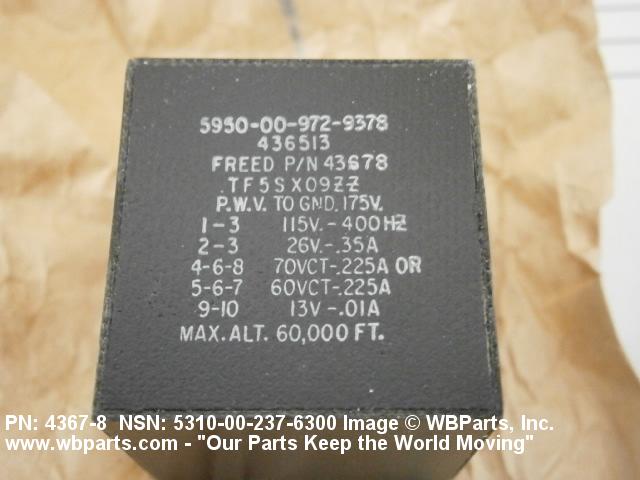Part Alternates: 43678, 4367-8, 99-7599-001, 5310-00-237-6300, 00-237-6300, 5310002376300, 002376300, 997599001