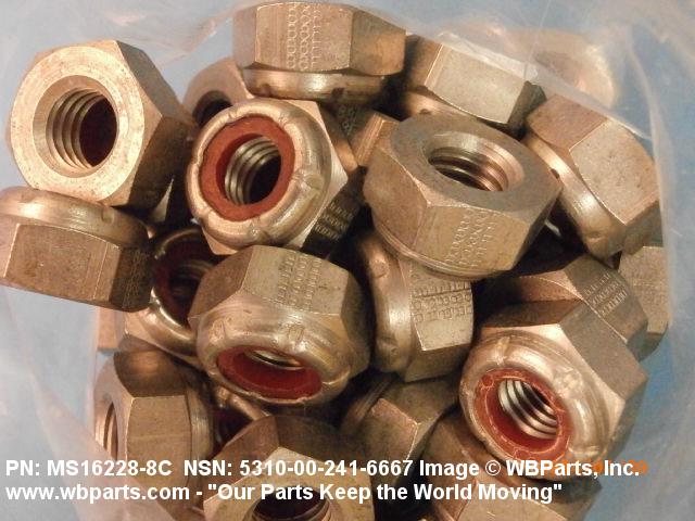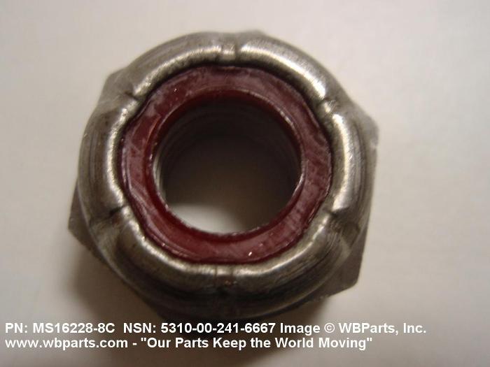5310-00-241-6667 A nut having a flat bottom and 6 sides. An integral feature is incorporated for locking on the threads of a mating member. Excludes NUT (1), SELF-LOCKING, CAP.
