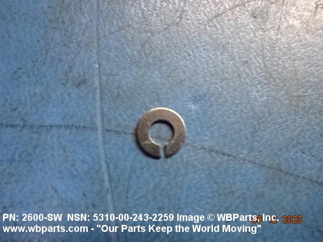 5310-00-243-2259 A washer, round in shape, and having a centrally located hole. Its two flat parallel bearing surfaces are divided or cut along the radius, leaving a cleft, fissure, or cutaway portion across the rim whch extends from the outer circumference to the washer hole but which is never as large as the washer hole diameter. Excludes WASHER (1), LOCK.