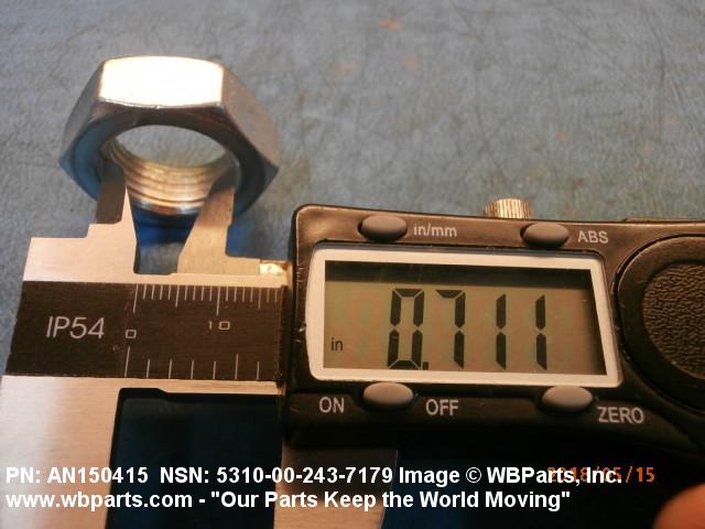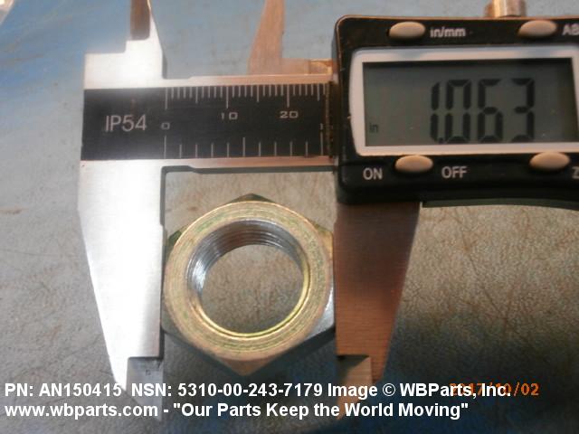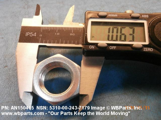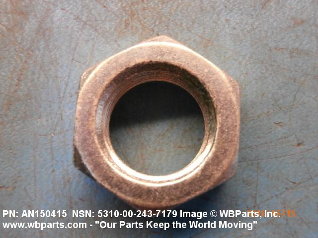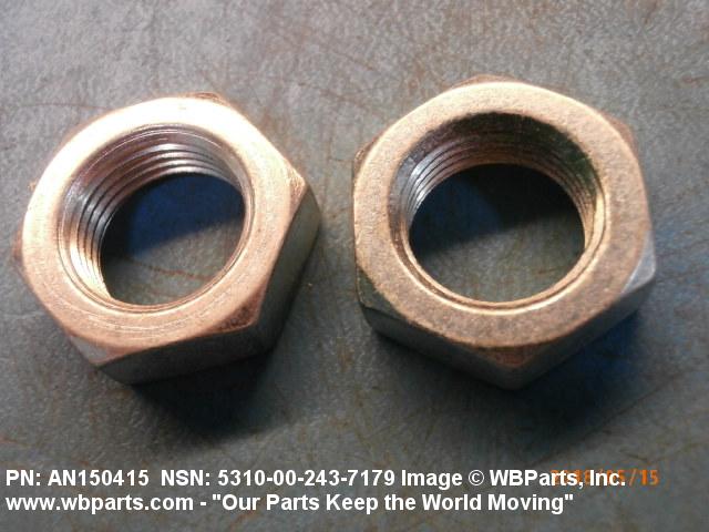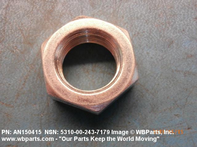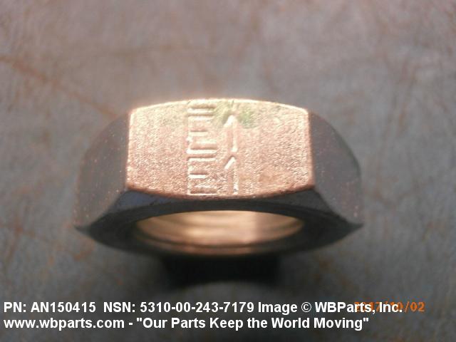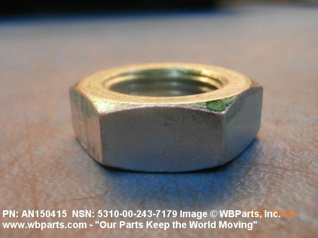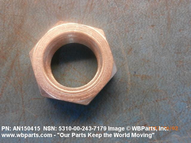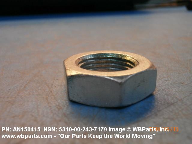 5310-00-243-7179 A nut, flat on top and bottom having 6 flat sides. For items which have internal tapered or straight (parallel) pipe threads, specific electrical conduit size designation, and which when installed, provide a method of tightening to lock the connection, see LOCKNUT, ELECTRICAL CONDUIT. See also LOCKNUT, TUBE FITTING. For items having a thickness (or height) exceeding two times the width across the flats, use POST, ELECTRICAL-MECHANICAL EQUIPMENT. (When height or thickness and/or width across the flats is designated as a tolerance dimension, the maximum dimension will be used to determine compliance.