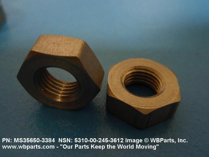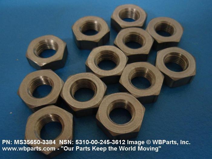 5310-00-245-3612 A nut, flat on top and bottom having 6 flat sides. For items which have internal tapered or straight (parallel) pipe threads, specific electrical conduit size designation, and which when installed, provide a method of tightening to lock the connection, see LOCKNUT, ELECTRICAL CONDUIT. See also LOCKNUT, TUBE FITTING. For items having a thickness (or height) exceeding two times the width across the flats, use POST, ELECTRICAL-MECHANICAL EQUIPMENT. (When height or thickness and/or width across the flats is designated as a tolerance dimension, the maximum dimension will be used to determine compliance.
