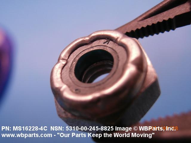 5310-00-245-8825 A nut having a flat bottom and 6 sides. An integral feature is incorporated for locking on the threads of a mating member. Excludes NUT (1), SELF-LOCKING, CAP.