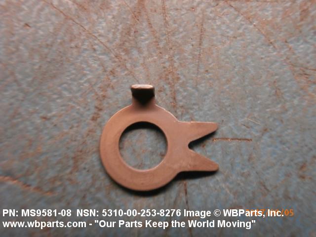 5310-00-253-8276 A washer of nonresilient material usually having two parallel bearing surfaces. The outside and/or inside edges have one or more protuberances. The ends and/or edges may be prebent at any angle or the protuberances may be prebent at any angle to the bearing surfaces. The keys or lugs may be fitted into keyways in adjacent material or they may be bent over after application to hold or lock one or more items in place. Excludes thrust type washer.