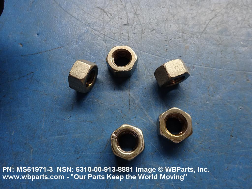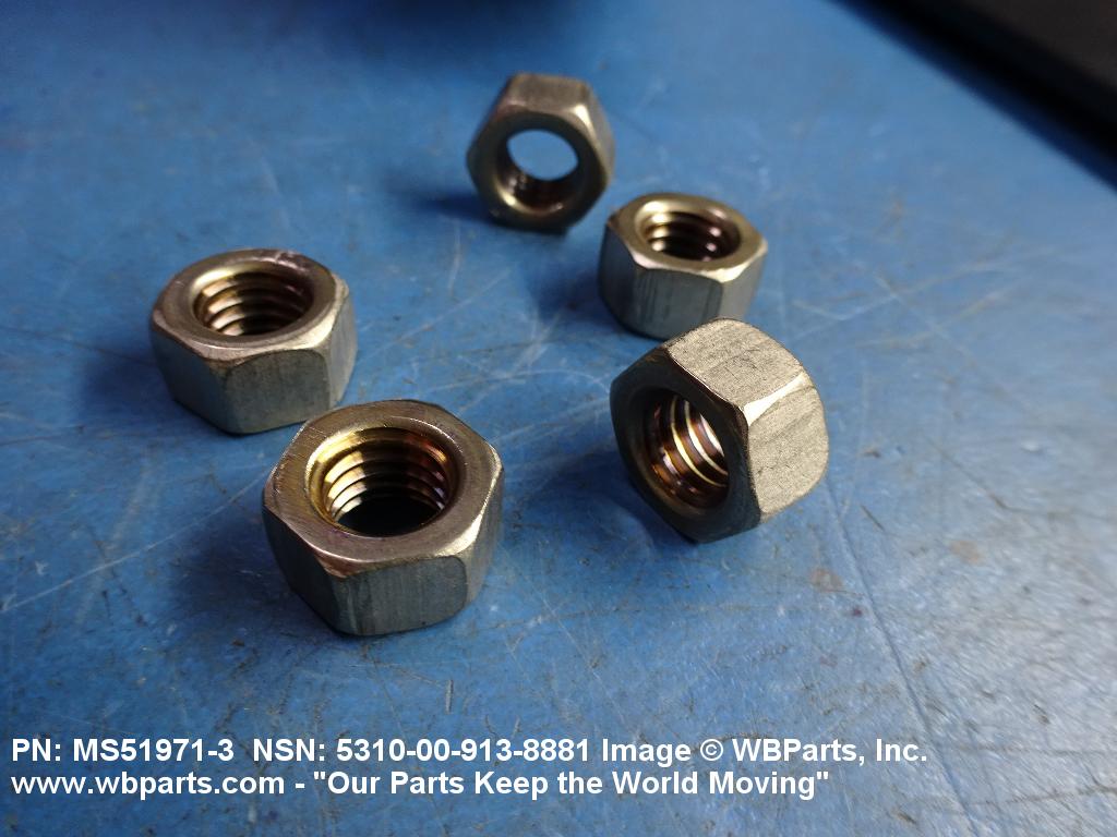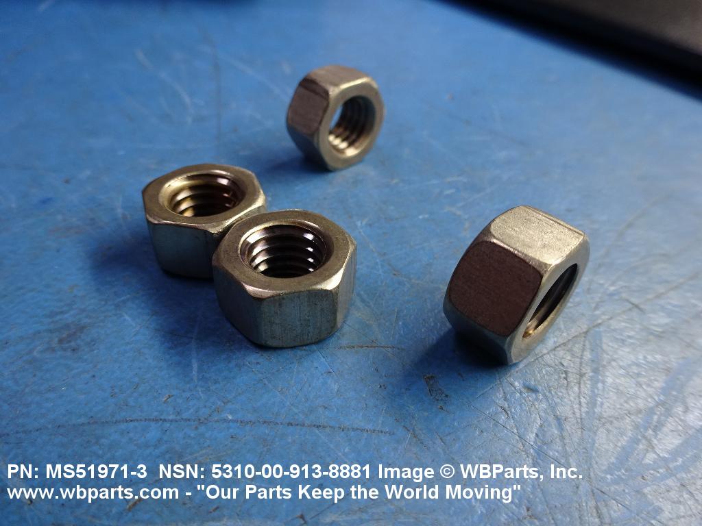 5310-00-260-7924 A nut, flat on top and bottom having 6 flat sides. For items which have internal tapered or straight (parallel) pipe threads, specific electrical conduit size designation, and which when installed, provide a method of tightening to lock the connection, see LOCKNUT, ELECTRICAL CONDUIT. See also LOCKNUT, TUBE FITTING. For items having a thickness (or height) exceeding two times the width across the flats, use POST, ELECTRICAL-MECHANICAL EQUIPMENT. (When height or thickness and/or width across the flats is designated as a tolerance dimension, the maximum dimension will be used to determine compliance.