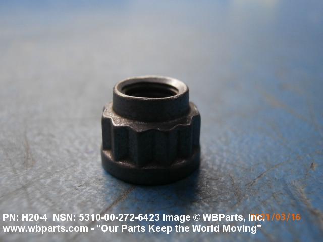 5310-00-272-6423 A nut having 12 drive points, 24 sides, and an integral washer which extends beyond the points or periphery. An integral feature is incorporated for locking on the threads of a mating member.