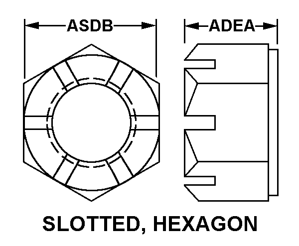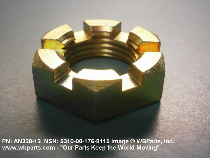 5310-00-282-4605 A nut having a flat bearing surface and 6 flat sides with slots in its upper portion. It is designed to provide positive locking when used with a solid or split (cotter) pin. Excludes NUT (1), PLAIN, CASTELLATED, HEXAGON.