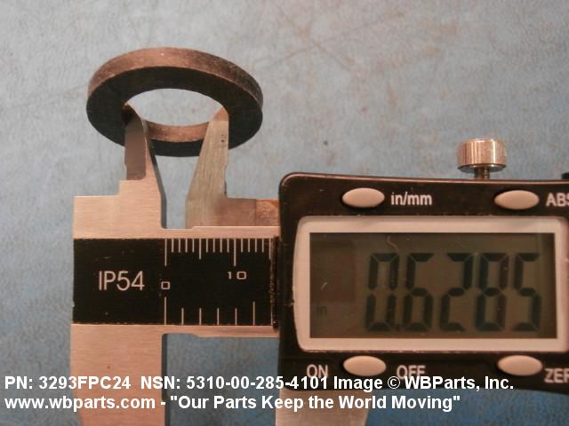 5310-00-285-4101 A washer having a centrally located hole with a solid or laminated cross-section and two flat parallel bearing surfaces. The hole must be 75 percent or less than the largest dimension and the bearing surface finish is greater than 32 microinch (0.8 micrometer). The thickness cannot exceed 25 percent of the largest outside dimension. When the largest outside dimension is less than 1/4 inch or 6mm, the thickness must be 0.006 inches (0.15mm) or greater and for items 1/4 inch (6mm) or larger, the thickness must be 0.016 inches (0.4mm) or greater. The maximum tolerance is applied to dimensions and used as a determining factor. Items with separable lamination use SHIM. For items fabricated from ceramic or electrically rated materials by specification or industry standards use INSULATOR (1), WASHER. Excludes DISK, VALVE, graphite impregnated and lubricated items.
