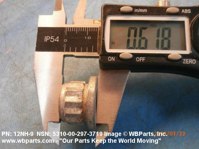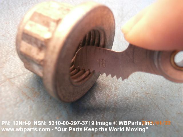 5310-00-297-3719 A nut having 12 drive points, 24 sides, and an integral washer which extends beyond the points or periphery. An integral feature is incorporated for locking on the threads of a mating member.