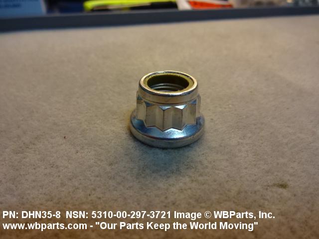 5310-00-297-3721 A nut having 12 drive points, 24 sides, and an integral washer which extends beyond the points or periphery. An integral feature is incorporated for locking on the threads of a mating member.