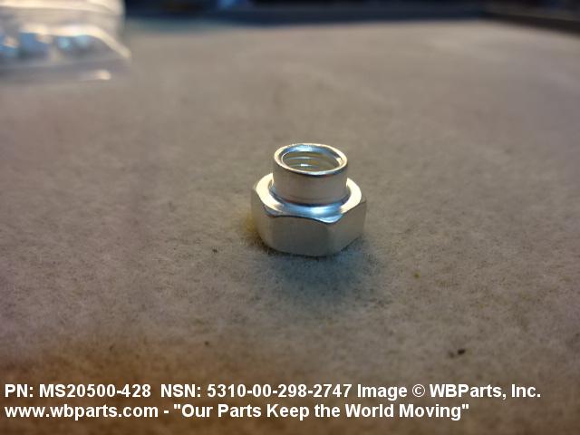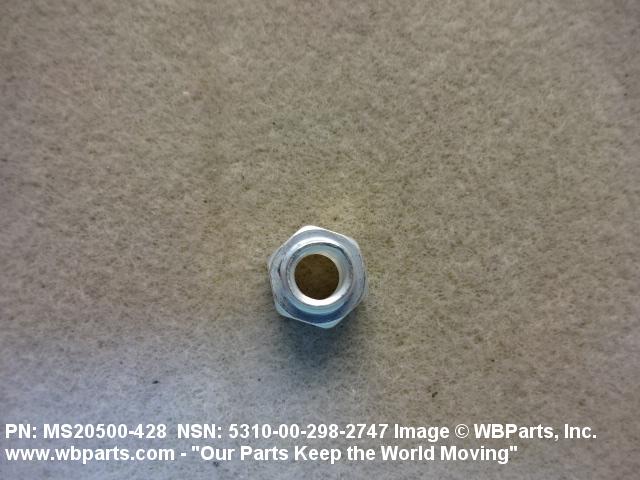 Part Alternates: MS20500428, MS20500-428, MS20500428S, MS20500-428S, H194754, H19475-4, JL2C428, ZNW1200480, ZNW1200-480, ZZ1803048, ZZ1803-048, 121T956, 1802-048 NUT, 1802048NUT, 3M1354, 3M135-4, 51392428, 51392-428, 5255809003, 525-580-9003, 6748886428, 6748886-428, 5310-00-298-2747, 00-298-2747, 5310002982747 , 002982747