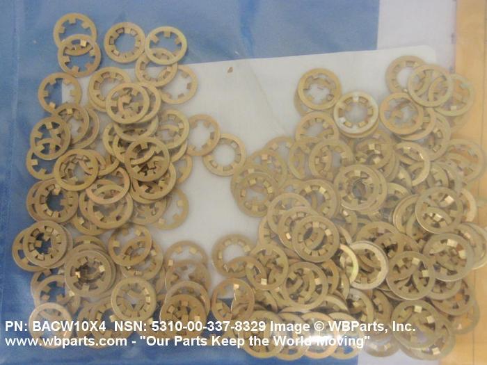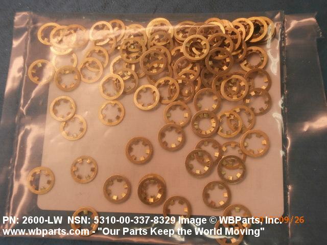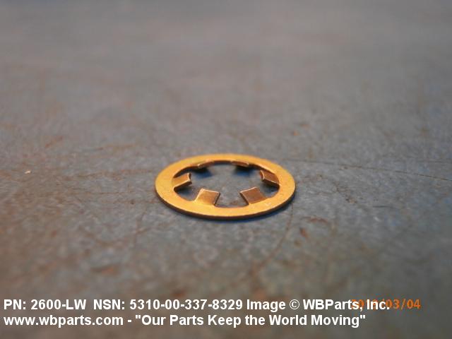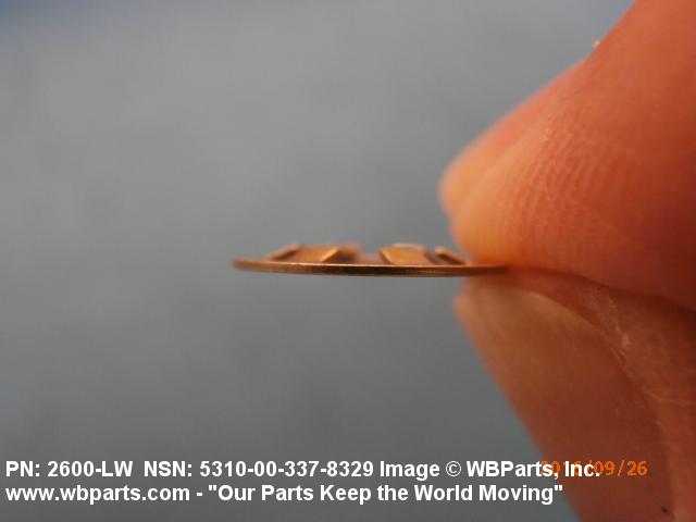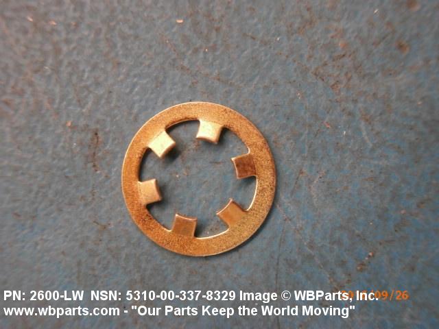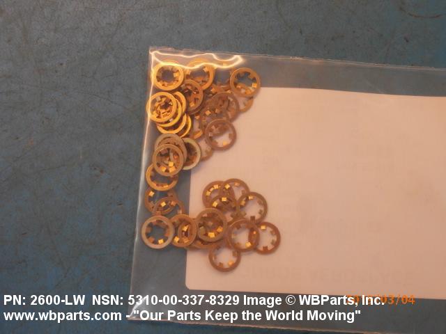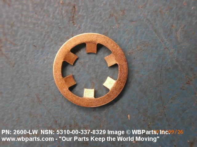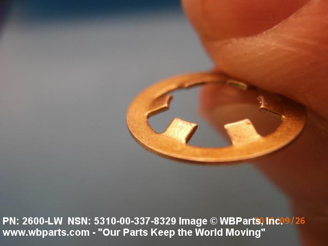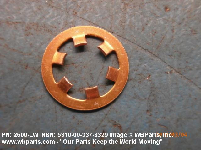 5310-00-337-8329 A washer which is usually round with a centrally located hole. Its edges and two bearing surfaces are so designed that applied pressure brings into play the spring tension and/or frictional locking principle which materially resists any tendency toward turning. It may be made of one or two pieces