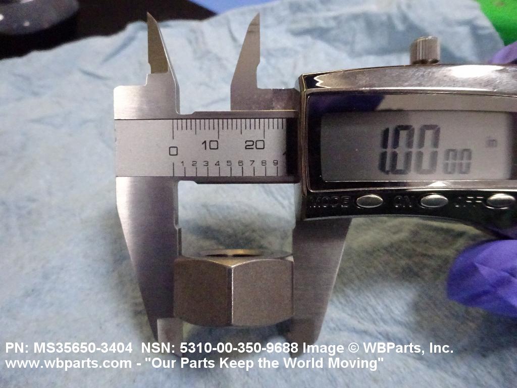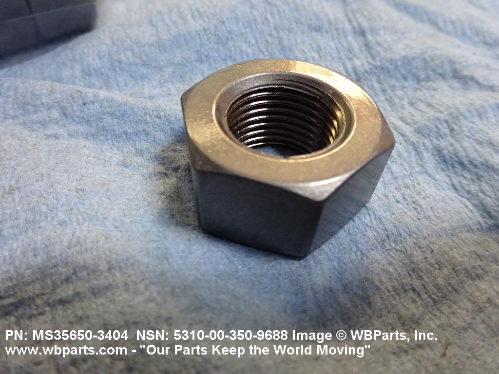 5310-00-350-9688 A nut, flat on top and bottom having 6 flat sides. For items which have internal tapered or straight (parallel) pipe threads, specific electrical conduit size designation, and which when installed, provide a method of tightening to lock the connection, see LOCKNUT, ELECTRICAL CONDUIT. See also LOCKNUT, TUBE FITTING. For items having a thickness (or height) exceeding two times the width across the flats, use POST, ELECTRICAL-MECHANICAL EQUIPMENT. (When height or thickness and/or width across the flats is designated as a tolerance dimension, the maximum dimension will be used to determine compliance.