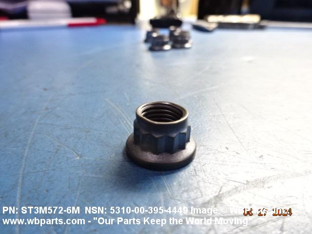 5310-00-395-4449 A nut having 12 drive points, 24 sides, and an integral washer which extends beyond the points or periphery. An integral feature is incorporated for locking on the threads of a mating member.