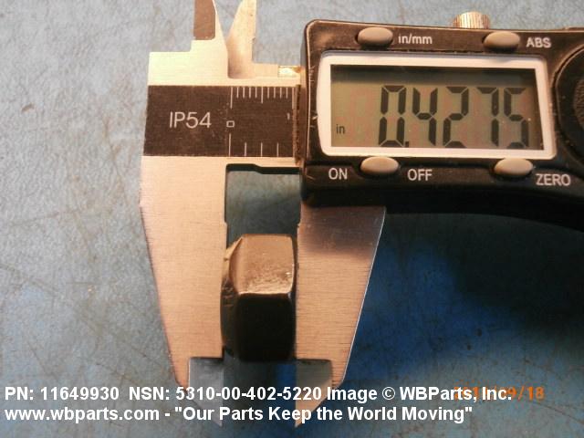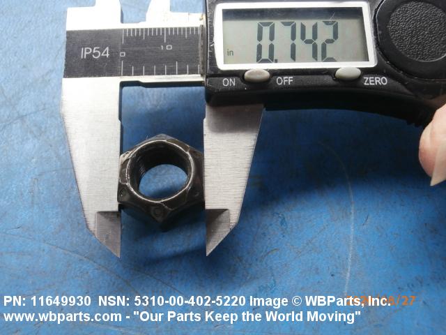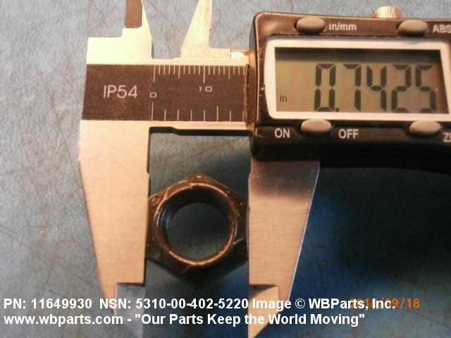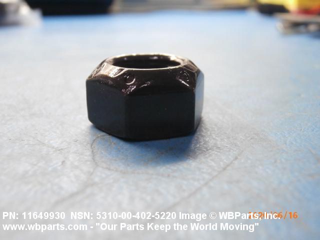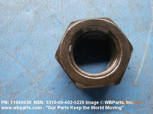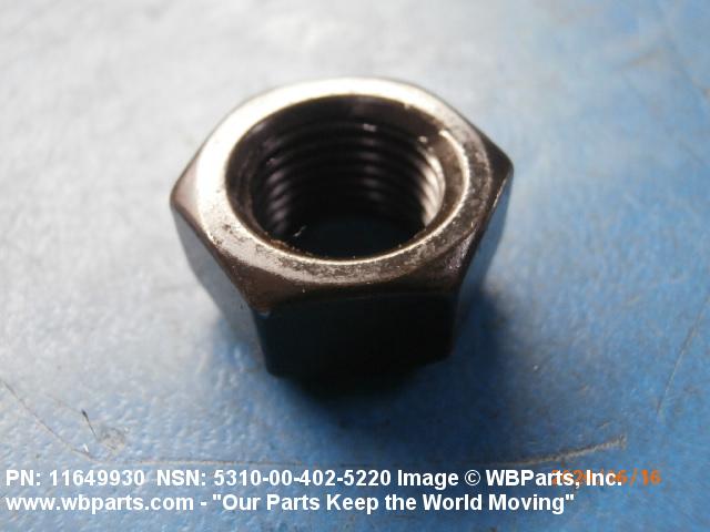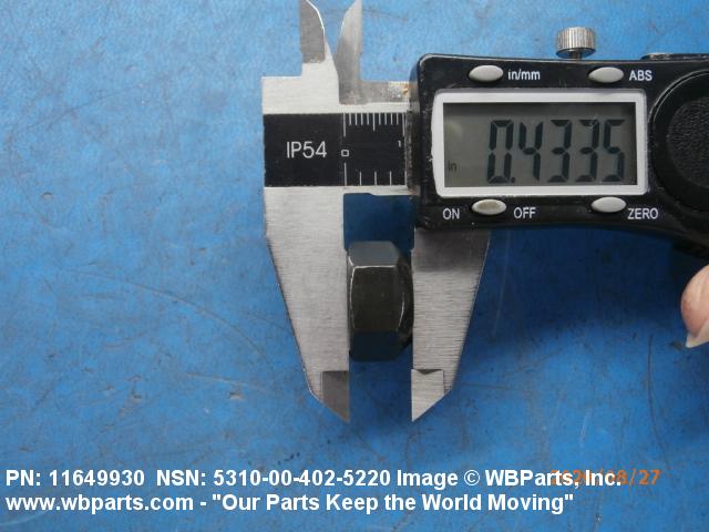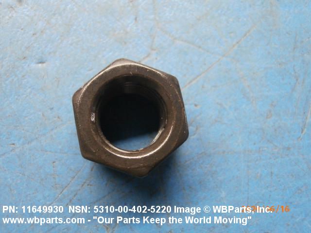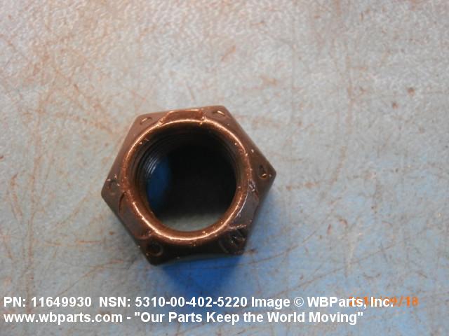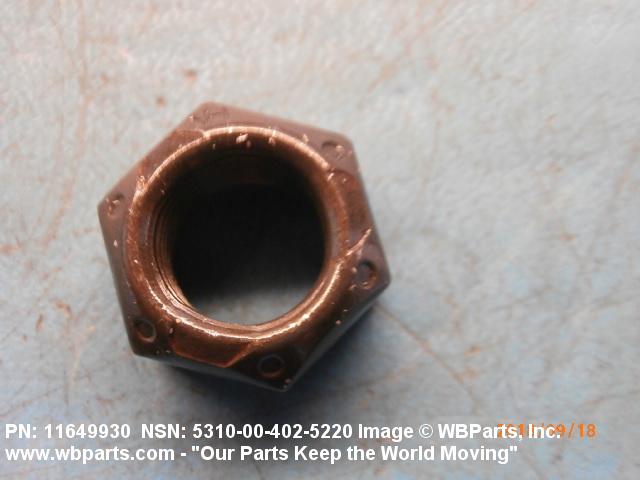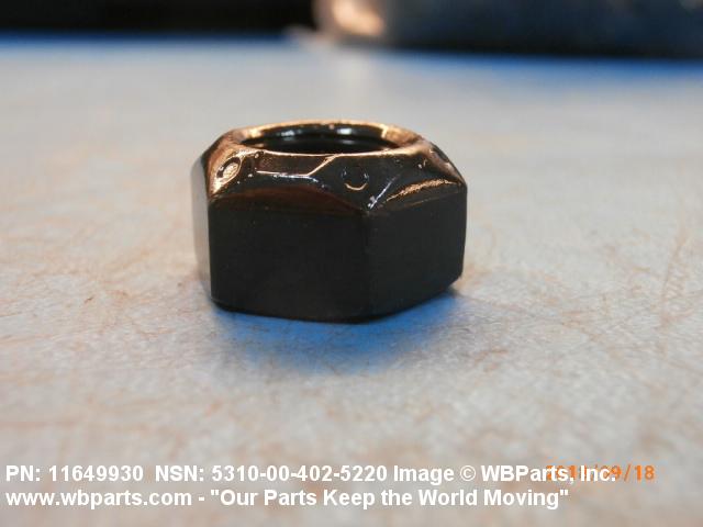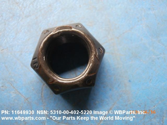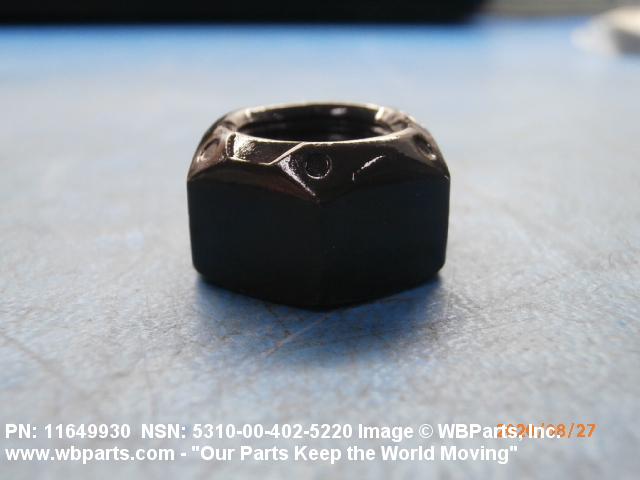 5310-00-402-5220 A nut having a flat bottom and 6 sides. An integral feature is incorporated for locking on the threads of a mating member. Excludes NUT (1), SELF-LOCKING, CAP.