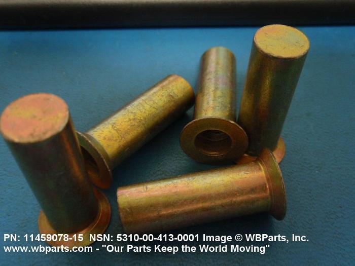 5310-00-413-0001 A metallic headed fastener having internal threads for a portion of the full length. It may have a smooth, hexagon or splined shank with an open or closed end. Is designed to be expanded tightly against the material it is being installed in by means of a special tool. The item must have a specified grip range. The grip range is the thickness of the material the item is being installed in. See also NUT (1) SELF-LOCKING, BLIND RIVET. Excludes NUT (1), SLEEVE.