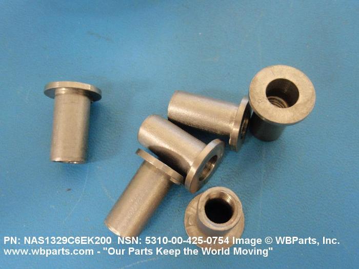 5310-00-425-0754 A metallic headed fastener having internal threads for a portion of the full length. It may have a smooth, hexagon or splined shank with an open or closed end. It is designed to be expanded tightly against the material it is being installed in by means of a special tool. The item must have a specified grip range. The grip range is the thickness of the material the item is being installed in. An integral feature is incorporated for locking on the threads of a mating member.