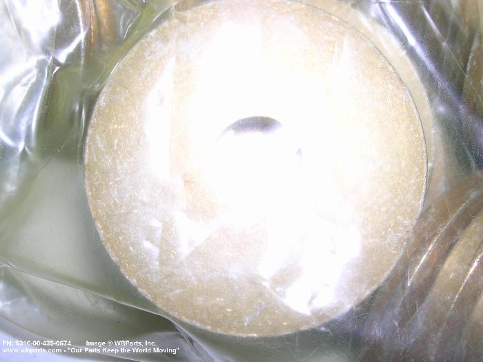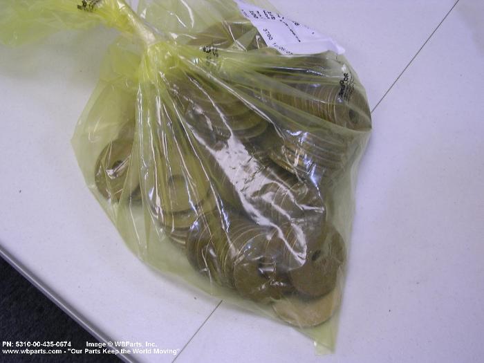 5310-00-435-0674 A washer having a centrally located hole with a solid or laminated cross-section and two flat parallel bearing surfaces. The hole must be 75 percent or less than the largest dimension and the bearing surface finish is greater than 32 microinch (0.8 micrometer). The thickness cannot exceed 25 percent of the largest outside dimension. When the largest outside dimension is less than 1/4 inch or 6mm, the thickness must be 0.006 inches (0.15mm) or greater and for items 1/4 inch (6mm) or larger, the thickness must be 0.016 inches (0.4mm) or greater. The maximum tolerance is applied to dimensions and used as a determining factor. Items with separable lamination use SHIM. For items fabricated from ceramic or electrically rated materials by specification or industry standards use INSULATOR (1), WASHER. Excludes DISK, VALVE, graphite impregnated and lubricated items.