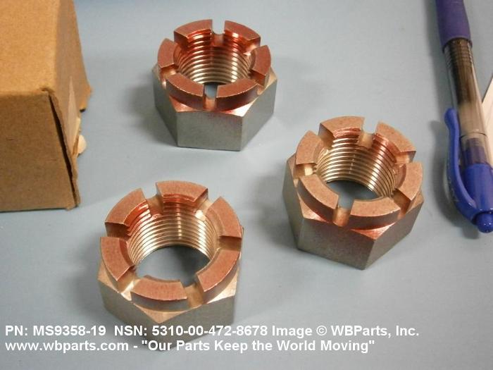5310-00-472-8678 A nut having 6 flat sides, flat on the bottom and having a slotted cylindrical or dome shaped upper portion. It is designed to provide positive locking when used with a solid or split (cotter) pin. Excludes NUT (1), PLAIN, SLOTTED, HEXAGON.