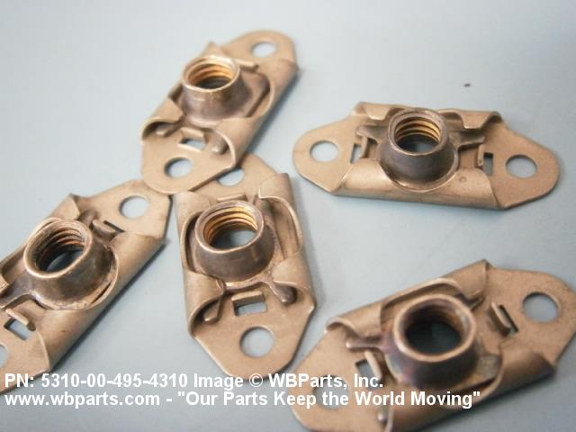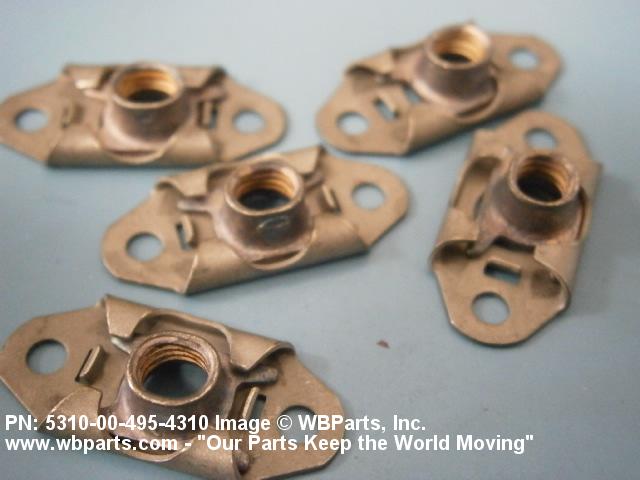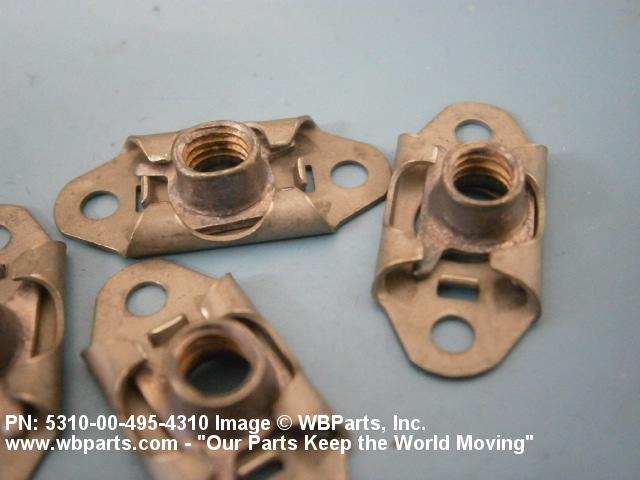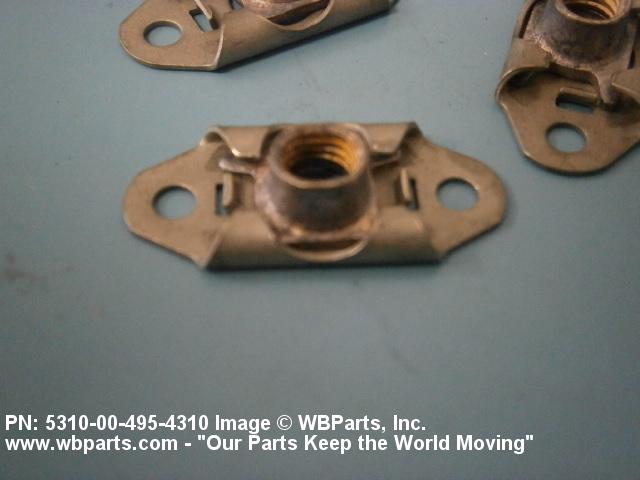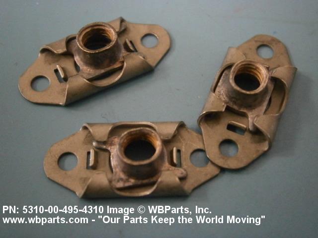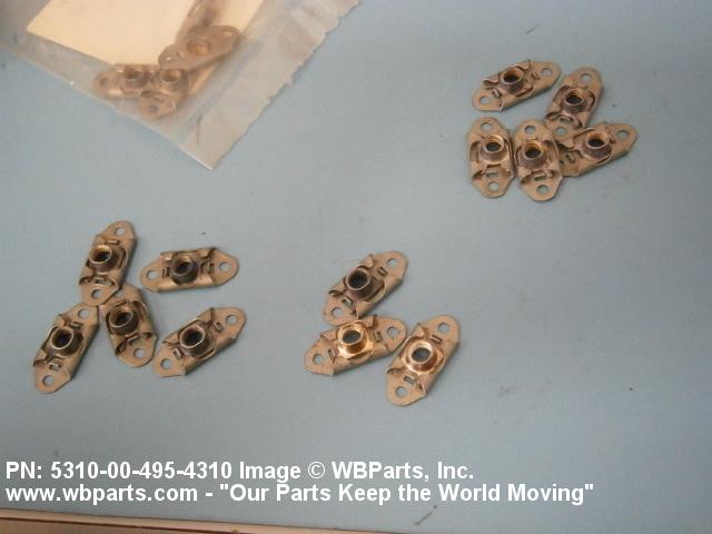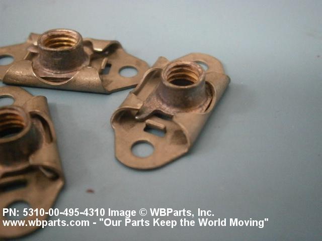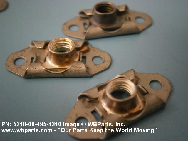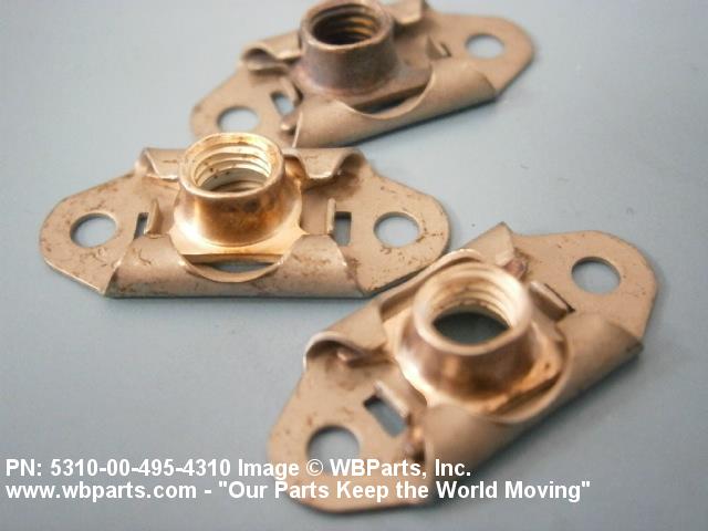5310-00-495-4310 A nut with a flanged base of varied shapes which may be plain or mounted by rivets, bolts, welding or integral prongs. An integral feature is incorporated for locking on the threads of a mating member.