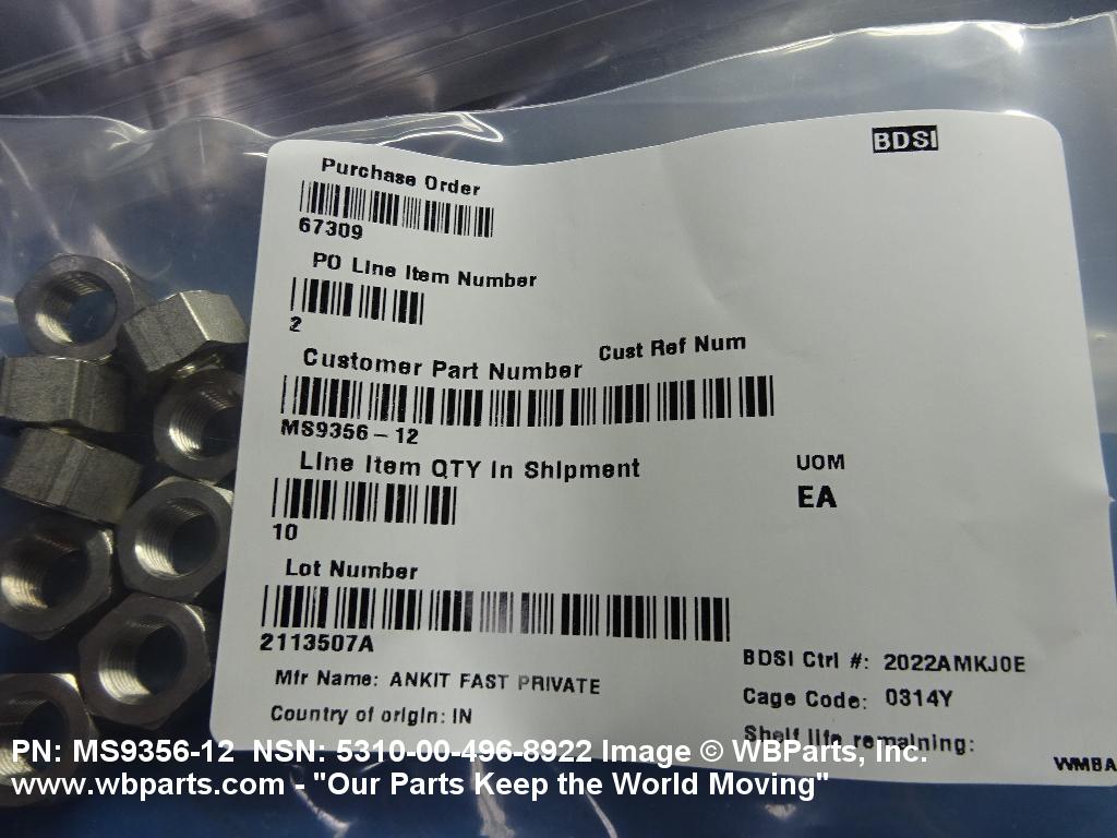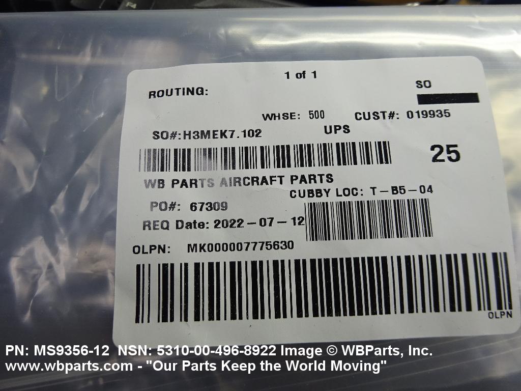 NSN 5310-00-496-8922 MS935612, MS9356-12, 00-496-8922