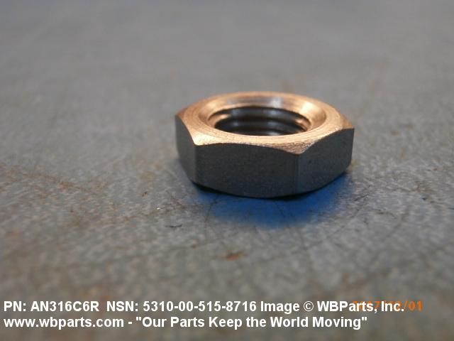 5310-00-515-8716 A nut, flat on top and bottom having 6 flat sides. For items which have internal tapered or straight (parallel) pipe threads, specific electrical conduit size designation, and which when installed, provide a method of tightening to lock the connection, see LOCKNUT, ELECTRICAL CONDUIT. See also LOCKNUT, TUBE FITTING. For items having a thickness (or height) exceeding two times the width across the flats, use POST, ELECTRICAL-MECHANICAL EQUIPMENT. (When height or thickness and/or width across the flats is designated as a tolerance dimension, the maximum dimension will be used to determine compliance.