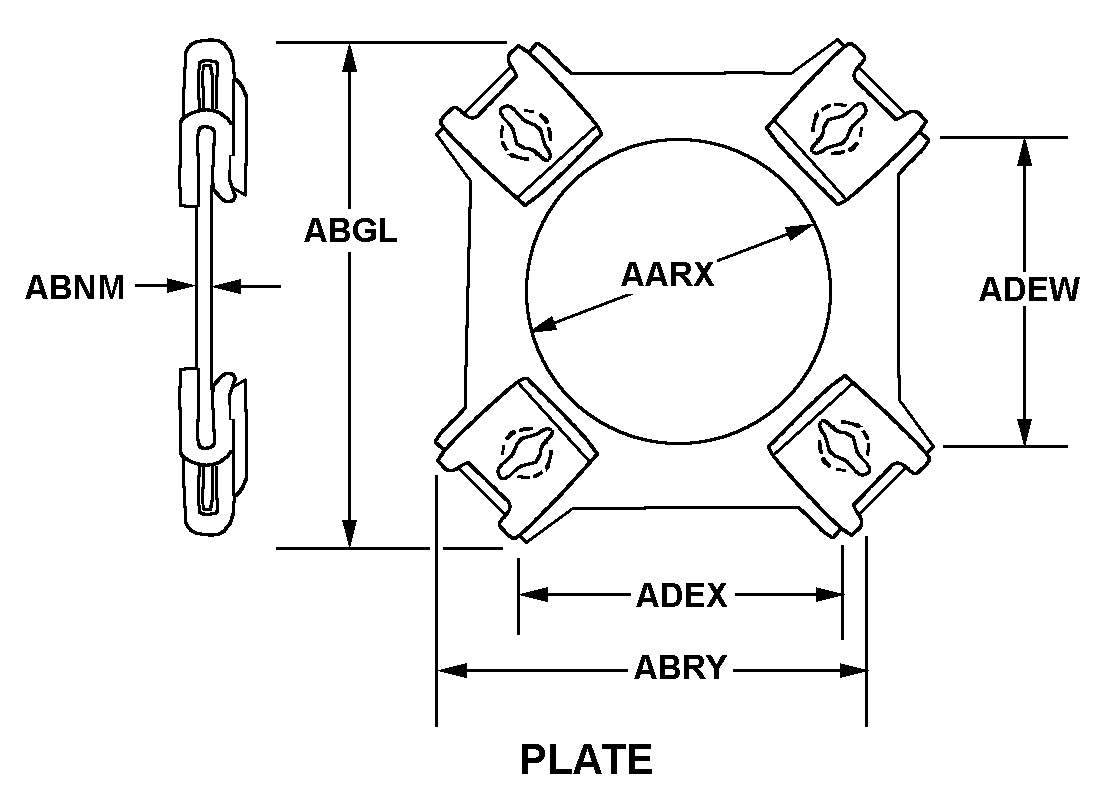 5310-00-527-4993 A square or rectangular flat metal plate upon which replaceable nuts are assembled in predetermined spacing. The plate has a centrally located hole.
