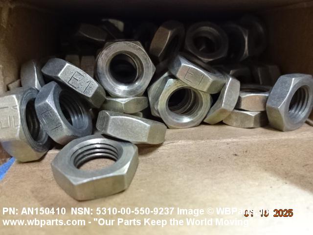 5310-00-550-9237 A nut, flat on top and bottom having 6 flat sides. For items which have internal tapered or straight (parallel) pipe threads, specific electrical conduit size designation, and which when installed, provide a method of tightening to lock the connection, see LOCKNUT, ELECTRICAL CONDUIT. See also LOCKNUT, TUBE FITTING. For items having a thickness (or height) exceeding two times the width across the flats, use POST, ELECTRICAL-MECHANICAL EQUIPMENT. (When height or thickness and/or width across the flats is designated as a tolerance dimension, the maximum dimension will be used to determine compliance.