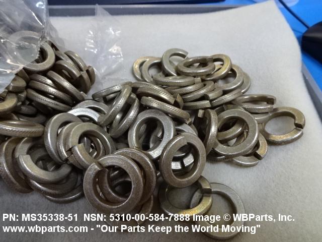 5310-00-584-7888 A washer which is usually round with a centrally located hole. Its edges and two bearing surfaces are so designed that applied pressure brings into play the spring tension and/or frictional locking principle which materially resists any tendency toward turning. It may be made of one or two pieces