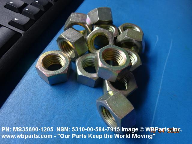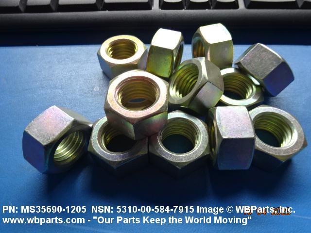 5310-00-584-7915 A nut, flat on top and bottom having 6 flat sides. For items which have internal tapered or straight (parallel) pipe threads, specific electrical conduit size designation, and which when installed, provide a method of tightening to lock the connection, see LOCKNUT, ELECTRICAL CONDUIT. See also LOCKNUT, TUBE FITTING. For items having a thickness (or height) exceeding two times the width across the flats, use POST, ELECTRICAL-MECHANICAL EQUIPMENT. (When height or thickness and/or width across the flats is designated as a tolerance dimension, the maximum dimension will be used to determine compliance.
