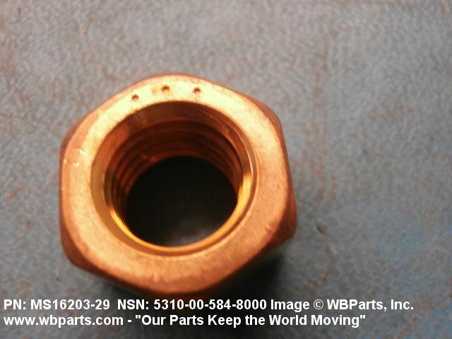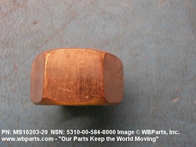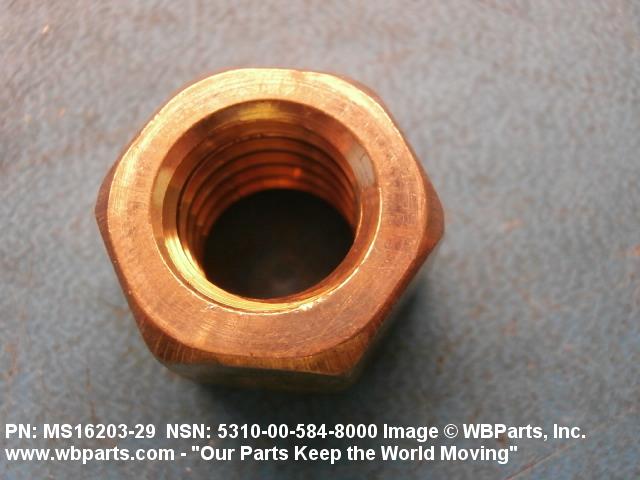 5310-00-584-8000 A nut, flat on top and bottom having 6 flat sides. For items which have internal tapered or straight (parallel) pipe threads, specific electrical conduit size designation, and which when installed, provide a method of tightening to lock the connection, see LOCKNUT, ELECTRICAL CONDUIT. See also LOCKNUT, TUBE FITTING. For items having a thickness (or height) exceeding two times the width across the flats, use POST, ELECTRICAL-MECHANICAL EQUIPMENT. (When height or thickness and/or width across the flats is designated as a tolerance dimension, the maximum dimension will be used to determine compliance.
