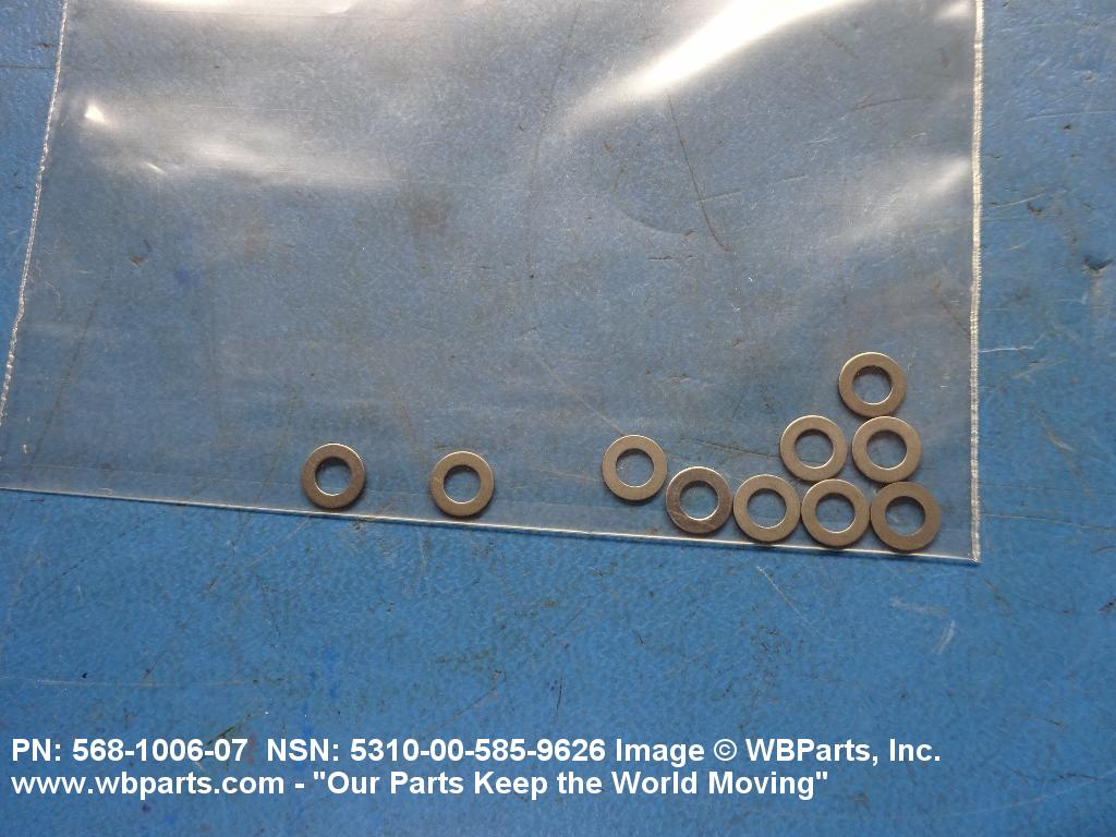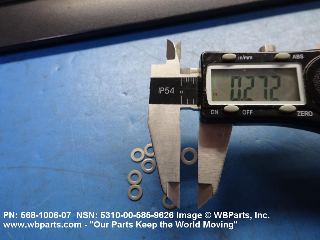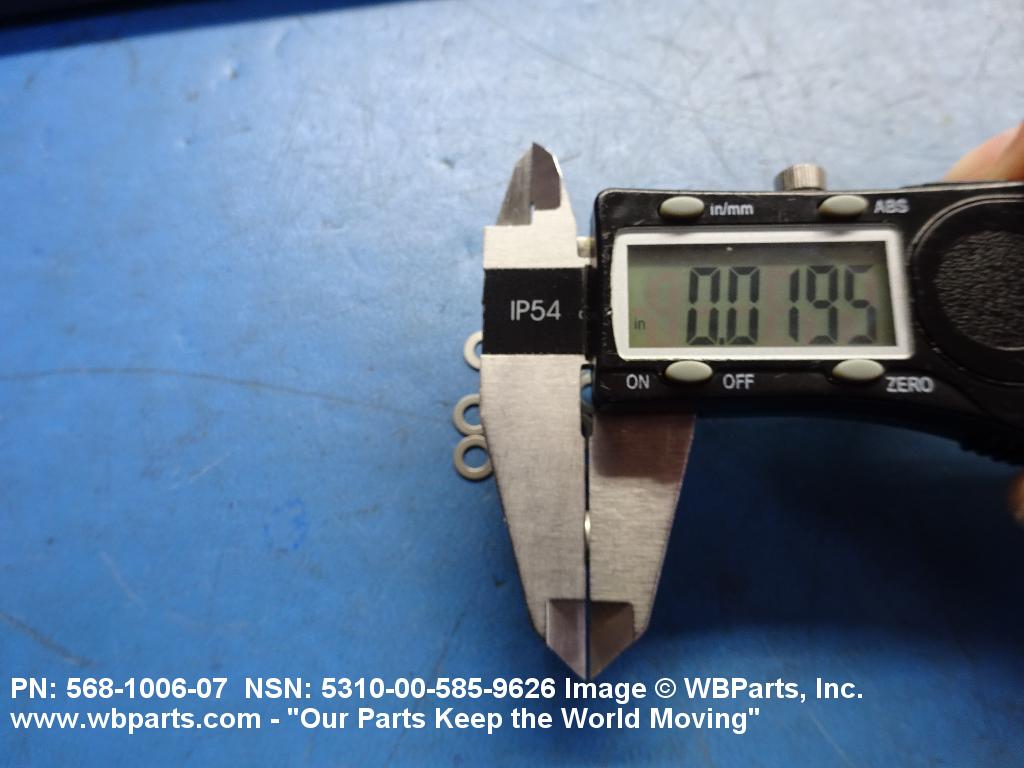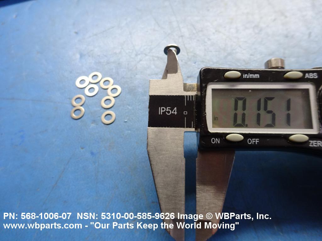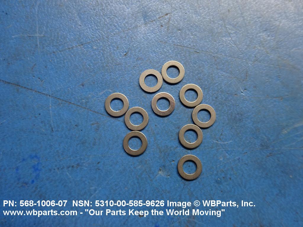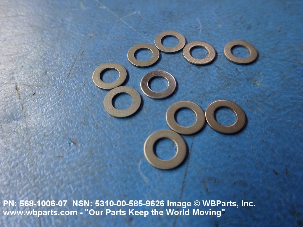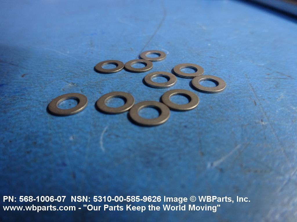 5310-00-585-9626 A washer having a centrally located hole with a solid or laminated cross-section and two flat parallel bearing surfaces. The hole must be 75 percent or less than the largest dimension and the bearing surface finish is greater than 32 microinch (0.8 micrometer). The thickness cannot exceed 25 percent of the largest outside dimension. When the largest outside dimension is less than 1/4 inch or 6mm, the thickness must be 0.006 inches (0.15mm) or greater and for items 1/4 inch (6mm) or larger, the thickness must be 0.016 inches (0.4mm) or greater. The maximum tolerance is applied to dimensions and used as a determining factor. Items with separable lamination use SHIM. For items fabricated from ceramic or electrically rated materials by specification or industry standards use INSULATOR (1), WASHER. Excludes DISK, VALVE, graphite impregnated and lubricated items.