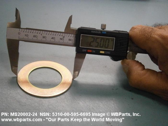 5310-00-595-6695 A washer having a centrally located hole with a solid or laminated cross-section and two flat parallel bearing surfaces. The hole must be 75 percent or less than the largest dimension and the bearing surface finish is greater than 32 microinch (0.8 micrometer). The thickness cannot exceed 25 percent of the largest outside dimension. When the largest outside dimension is less than 1/4 inch or 6mm, the thickness must be 0.006 inches (0.15mm) or greater and for items 1/4 inch (6mm) or larger, the thickness must be 0.016 inches (0.4mm) or greater. The maximum tolerance is applied to dimensions and used as a determining factor. Items with separable lamination use SHIM. For items fabricated from ceramic or electrically rated materials by specification or industry standards use INSULATOR (1), WASHER. Excludes DISK, VALVE, graphite impregnated and lubricated items.