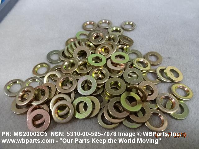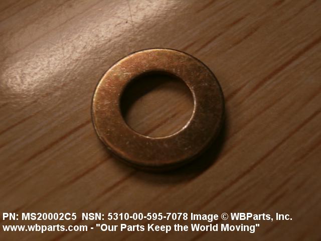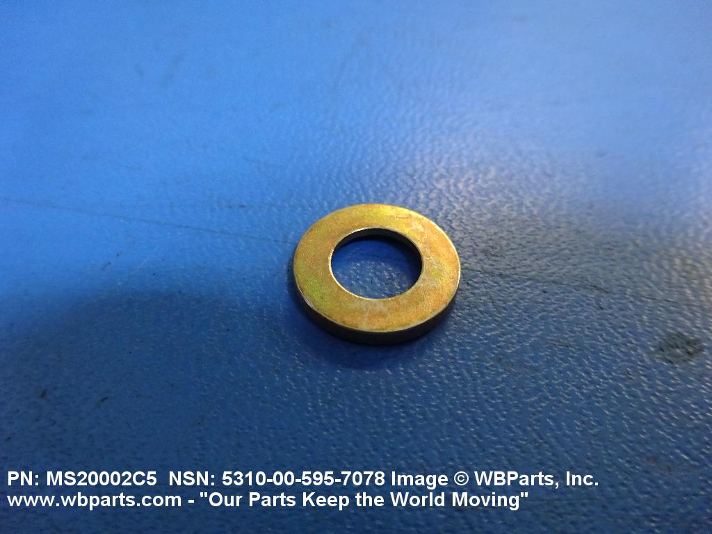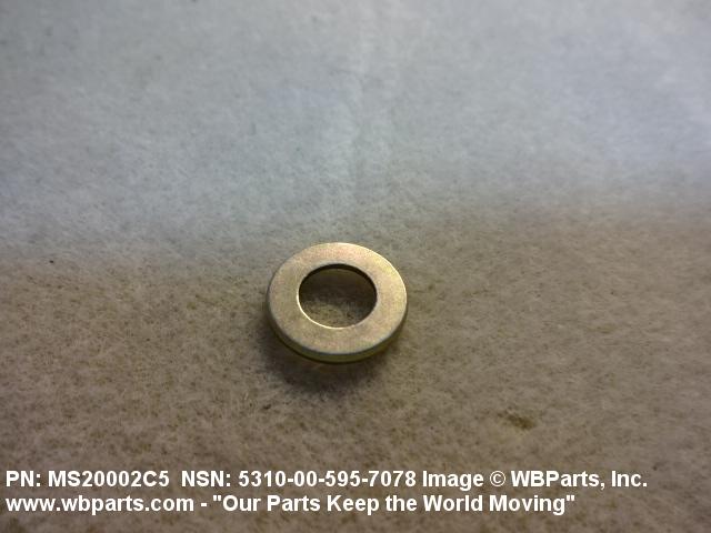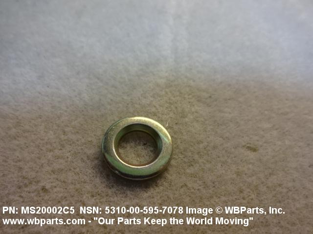 5310-00-595-7078 A washer of any peripheral shape having a centrally located hole. Both bearing surfaces are parallel and flat, but one or both of the bearing surfaces must be broken by a counterbore, countersink, or similarly shaped recess. The thickness must not exceed 25 per cent of the outside diameter or the largest outside dimension. The maximum limit of the tolerance or range applied to the thickness and/or largest outside dimension must be used to determine compliance. Excludes WASHER, CONCAVE, RETAINER, PACKING, and thrust type washers. See also SPACER, SLEEVE; and SPACER, STEPPED.