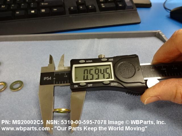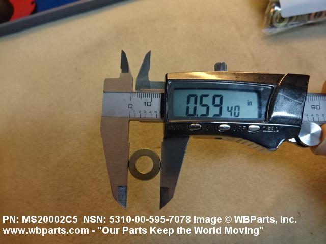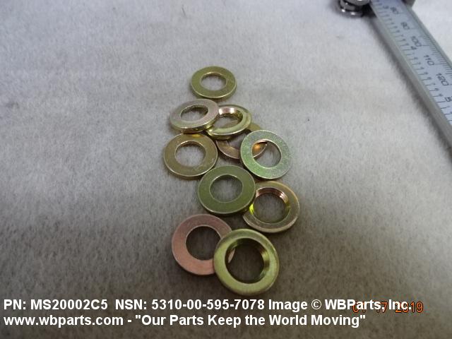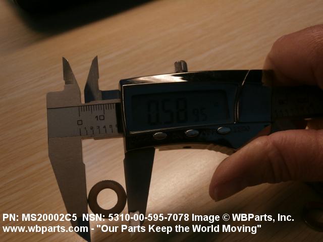 5310-00-595-7083 A washer of any peripheral shape having a centrally located hole. Both bearing surfaces are parallel and flat, but one or both of the bearing surfaces must be broken by a counterbore, countersink, or similarly shaped recess. The thickness must not exceed 25 per cent of the outside diameter or the largest outside dimension. The maximum limit of the tolerance or range applied to the thickness and/or largest outside dimension must be used to determine compliance. Excludes WASHER, CONCAVE, RETAINER, PACKING, and thrust type washers. See also SPACER, SLEEVE; and SPACER, STEPPED.