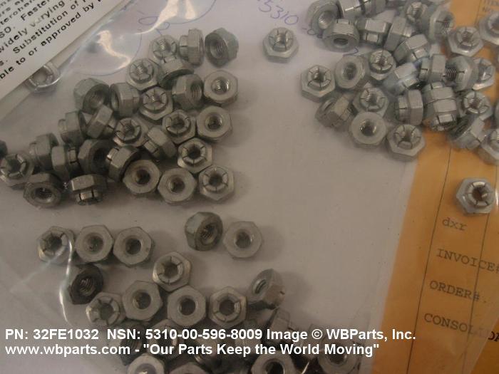 5310-00-596-8009 A nut having a flat bottom and 6 sides. An integral feature is incorporated for locking on the threads of a mating member. Excludes NUT (1), SELF-LOCKING, CAP.