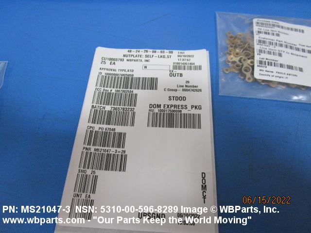 | MS21047-3 | 80205 | NATIONAL AEROSPACE STANDARDS COMMITTEE AEROSPACE INDUSTRIES |
