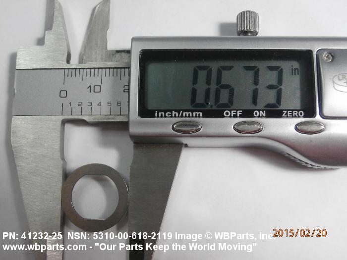 5310-00-618-2119 A washer having a centrally located hole with a solid or laminated cross-section and two flat parallel bearing surfaces. The hole must be 75 percent or less than the largest dimension and the bearing surface finish is greater than 32 microinch (0.8 micrometer). The thickness cannot exceed 25 percent of the largest outside dimension. When the largest outside dimension is less than 1/4 inch or 6mm, the thickness must be 0.006 inches (0.15mm) or greater and for items 1/4 inch (6mm) or larger, the thickness must be 0.016 inches (0.4mm) or greater. The maximum tolerance is applied to dimensions and used as a determining factor. Items with separable lamination use SHIM. For items fabricated from ceramic or electrically rated materials by specification or industry standards use INSULATOR (1), WASHER. Excludes DISK, VALVE, graphite impregnated and lubricated items.