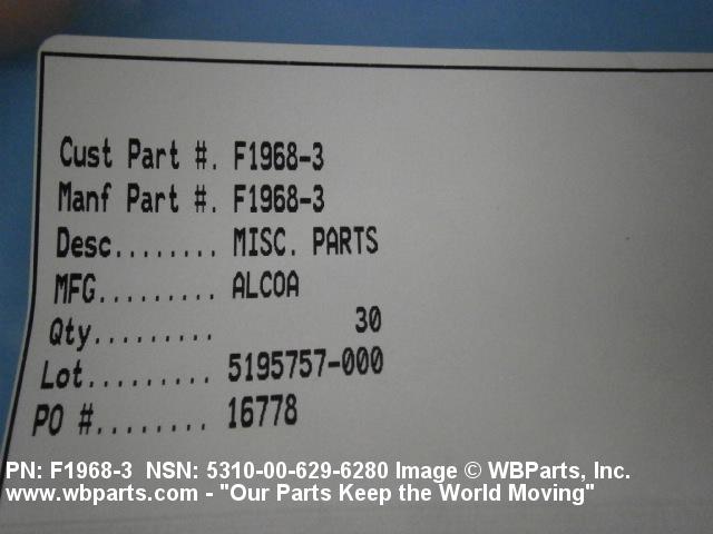 | F1968-3 | 75237 | ALCOA GLOBAL FASTENERS, INC. DBA ALCOA FASTENING SYSTEMS |