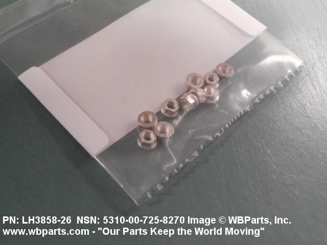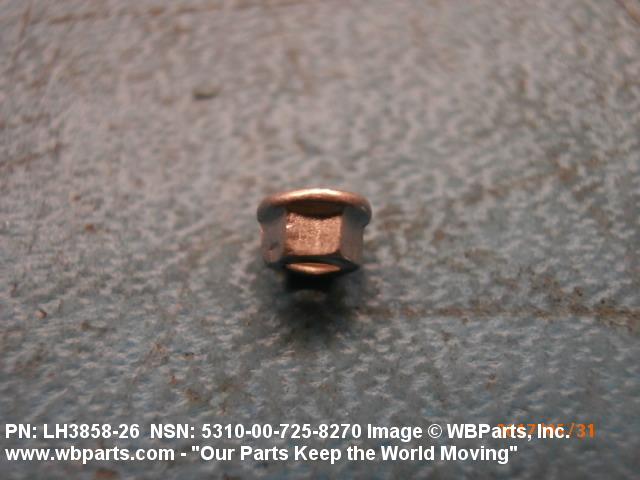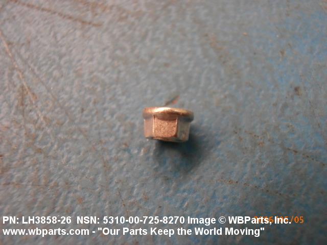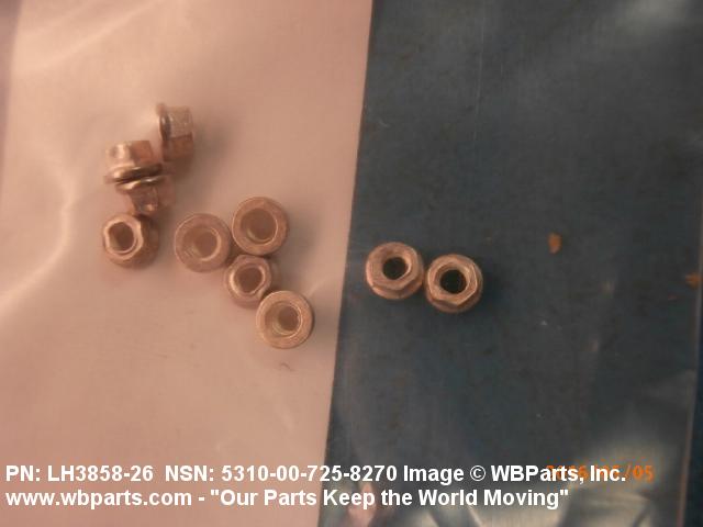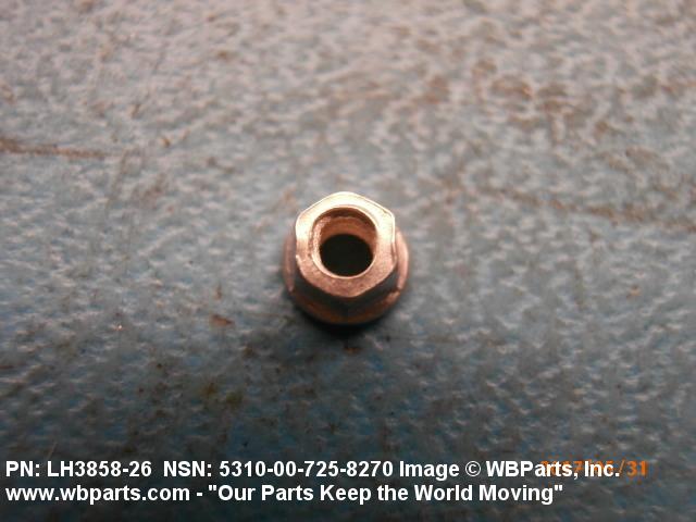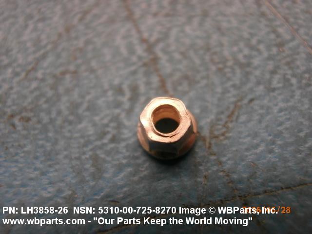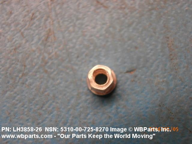 5310-00-725-8270 A nut having a flat bottom and 6 sides. An integral feature is incorporated for locking on the threads of a mating member. Excludes NUT (1), SELF-LOCKING, CAP.