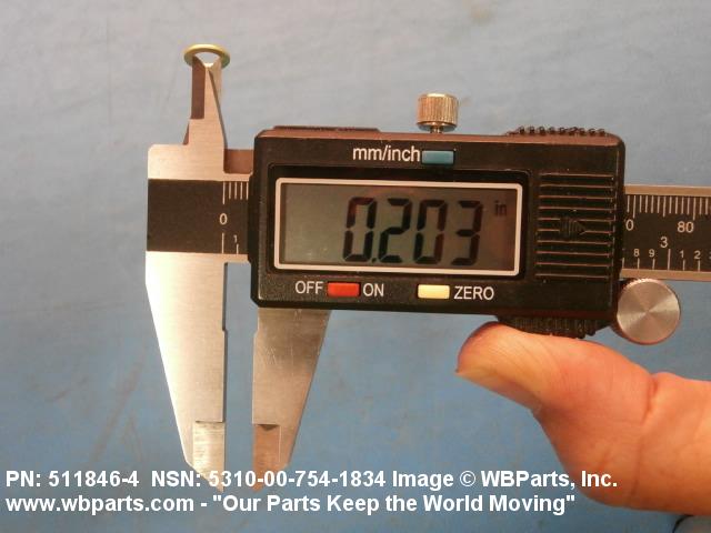 5310-00-754-1834 A washer having a centrally located hole with a solid or laminated cross-section and two flat parallel bearing surfaces. The hole must be 75 percent or less than the largest dimension and the bearing surface finish is greater than 32 microinch (0.8 micrometer). The thickness cannot exceed 25 percent of the largest outside dimension. When the largest outside dimension is less than 1/4 inch or 6mm, the thickness must be 0.006 inches (0.15mm) or greater and for items 1/4 inch (6mm) or larger, the thickness must be 0.016 inches (0.4mm) or greater. The maximum tolerance is applied to dimensions and used as a determining factor. Items with separable lamination use SHIM. For items fabricated from ceramic or electrically rated materials by specification or industry standards use INSULATOR (1), WASHER. Excludes DISK, VALVE, graphite impregnated and lubricated items.