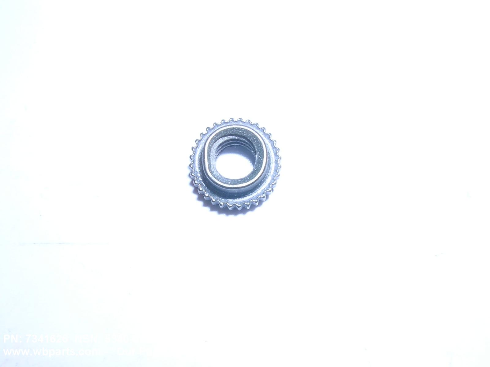 5310-00-758-2371 A nut having an externally splined sleeve, which holds it in position when forced into a hole of slightly smaller diameter. An integral feature is incorporated for locking.