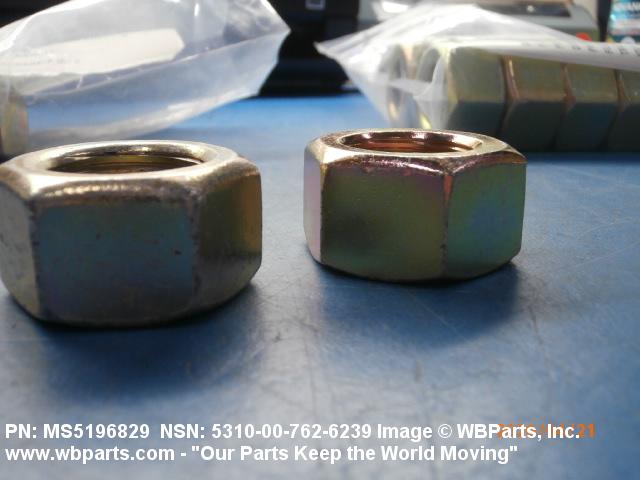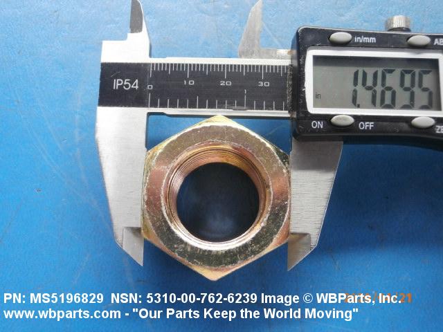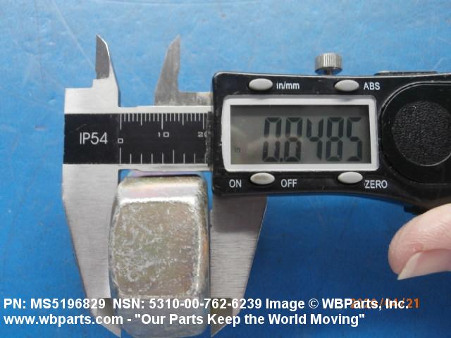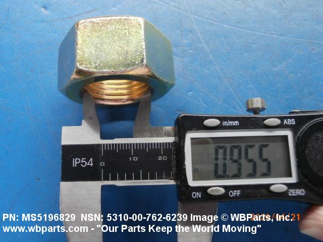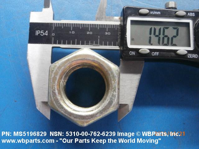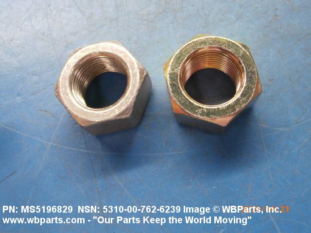 5310-00-762-6239 A nut, flat on top and bottom having 6 flat sides. For items which have internal tapered or straight (parallel) pipe threads, specific electrical conduit size designation, and which when installed, provide a method of tightening to lock the connection, see LOCKNUT, ELECTRICAL CONDUIT. See also LOCKNUT, TUBE FITTING. For items having a thickness (or height) exceeding two times the width across the flats, use POST, ELECTRICAL-MECHANICAL EQUIPMENT. (When height or thickness and/or width across the flats is designated as a tolerance dimension, the maximum dimension will be used to determine compliance.