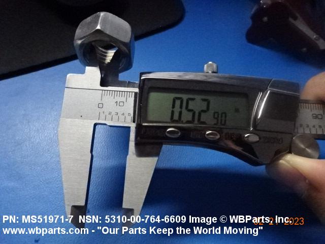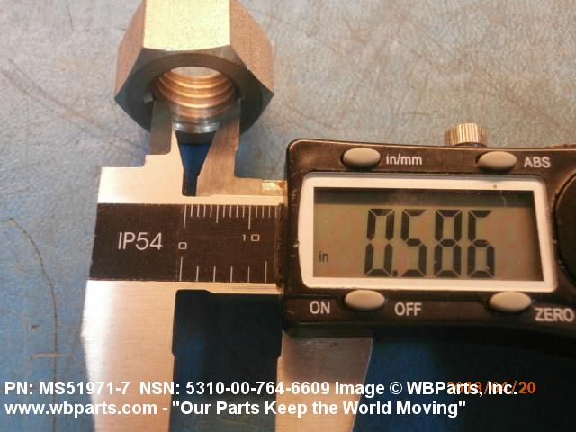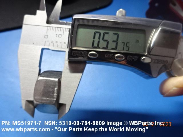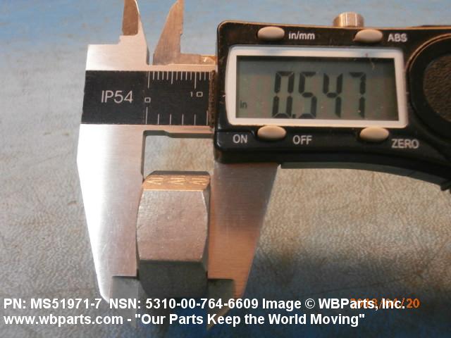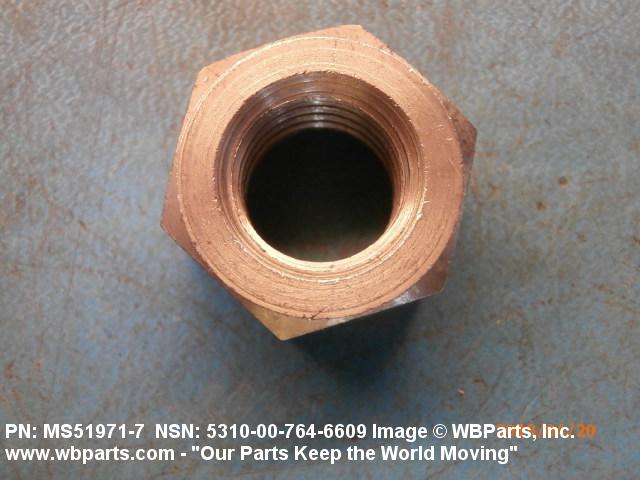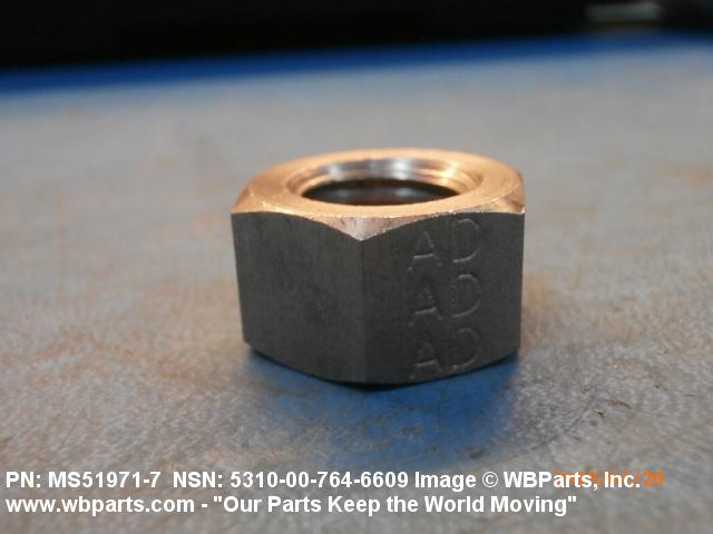 5310-00-764-6609 A nut, flat on top and bottom having 6 flat sides. For items which have internal tapered or straight (parallel) pipe threads, specific electrical conduit size designation, and which when installed, provide a method of tightening to lock the connection, see LOCKNUT, ELECTRICAL CONDUIT. See also LOCKNUT, TUBE FITTING. For items having a thickness (or height) exceeding two times the width across the flats, use POST, ELECTRICAL-MECHANICAL EQUIPMENT. (When height or thickness and/or width across the flats is designated as a tolerance dimension, the maximum dimension will be used to determine compliance.